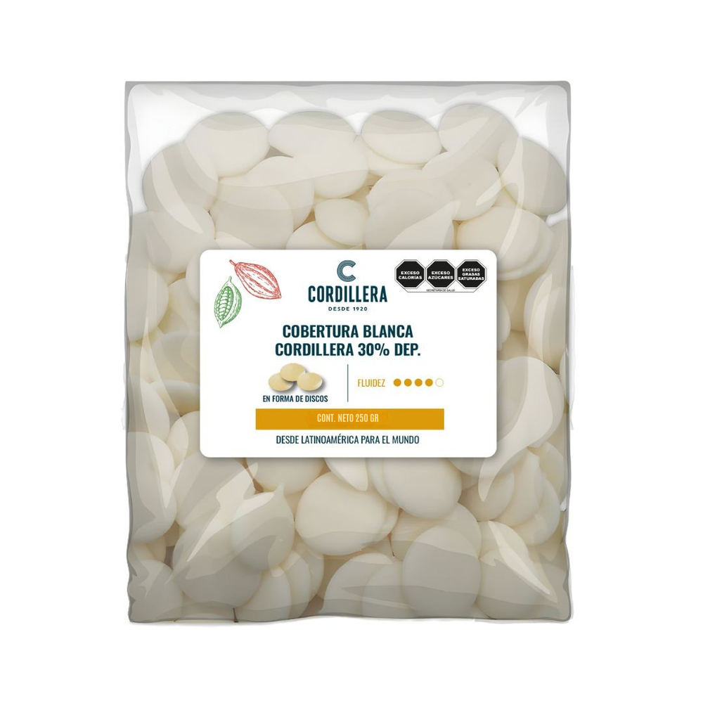 Disfruta la Cobertura Blanca Cordillera 30%, pensada para pastelería y