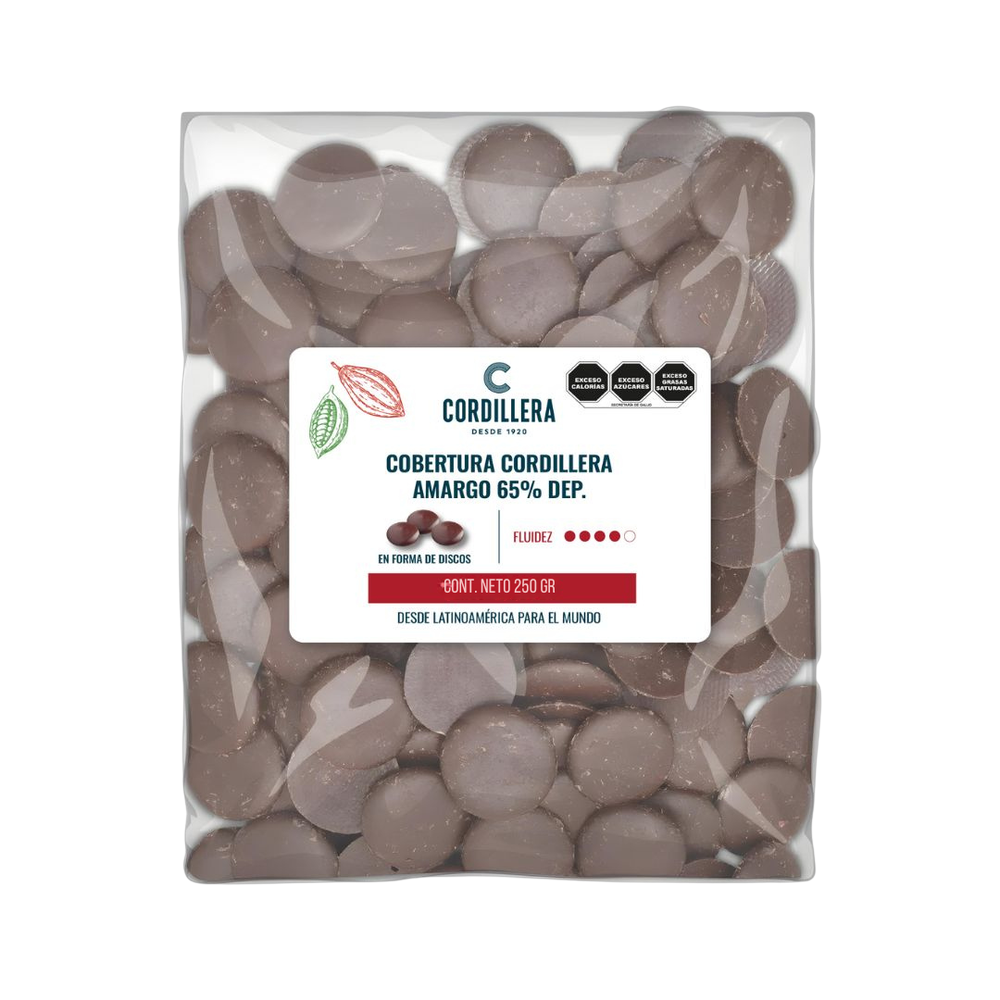 Cobertura de chocolate oscuro Cordillera 65% cacao, pensada para